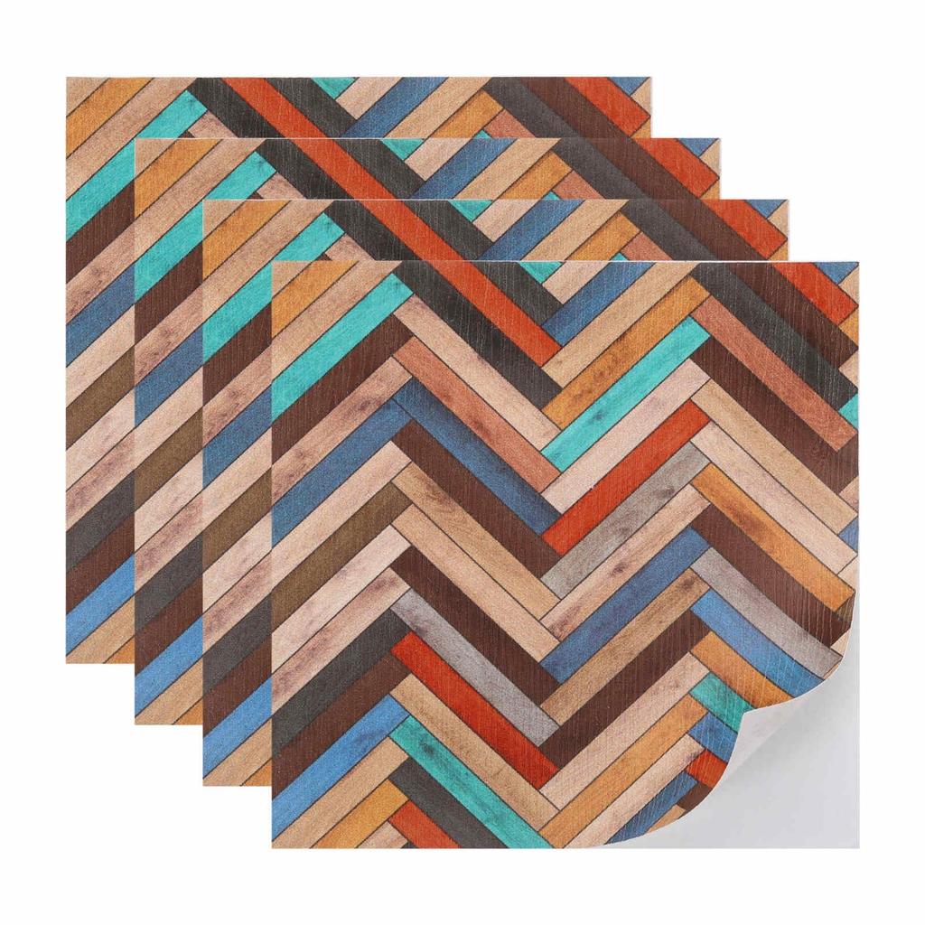 CoCud Dollhouse Flooring, 3.94" Square, PU Self-Adhesive Wood Grain Flooring for Miniature Dollhouses, Peel and Stick (Colorful) - (Use: Dollhouse