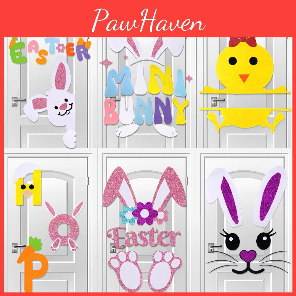 Colorful Rabbit Ear Easter Door Decor With Happy Easter Letter Wall Stickers