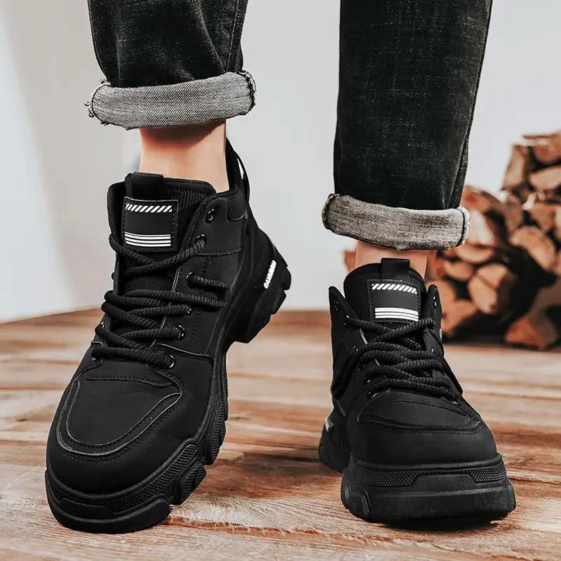 2026 Spring Autumn Outdoor Lace Up Men High Top Anti Slip Work Boots Korean New Durable Height Increasing All Match Casual Shoes