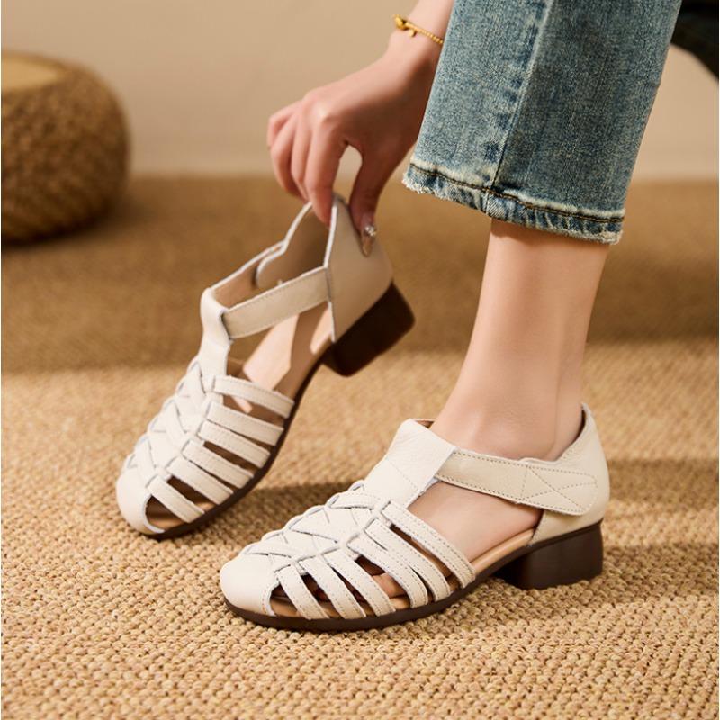 Genuine Leather Hollow Out Women Sandals Summer New Women's Flat Shoes Cow Tendon Soft Sole Comfortable Casual Mom Shoes
