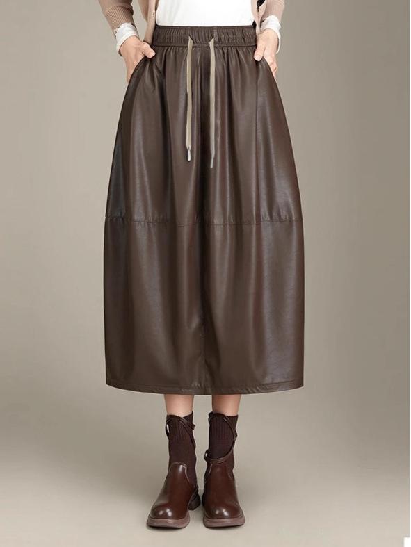 Women's 2025 New Style Elastic Waist Leather Skirt - Versatile Bud Skirt with Flattering Fit