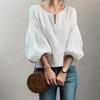 2026 Lace Patchwork Puff Sleeve Pleated Women's Shirt