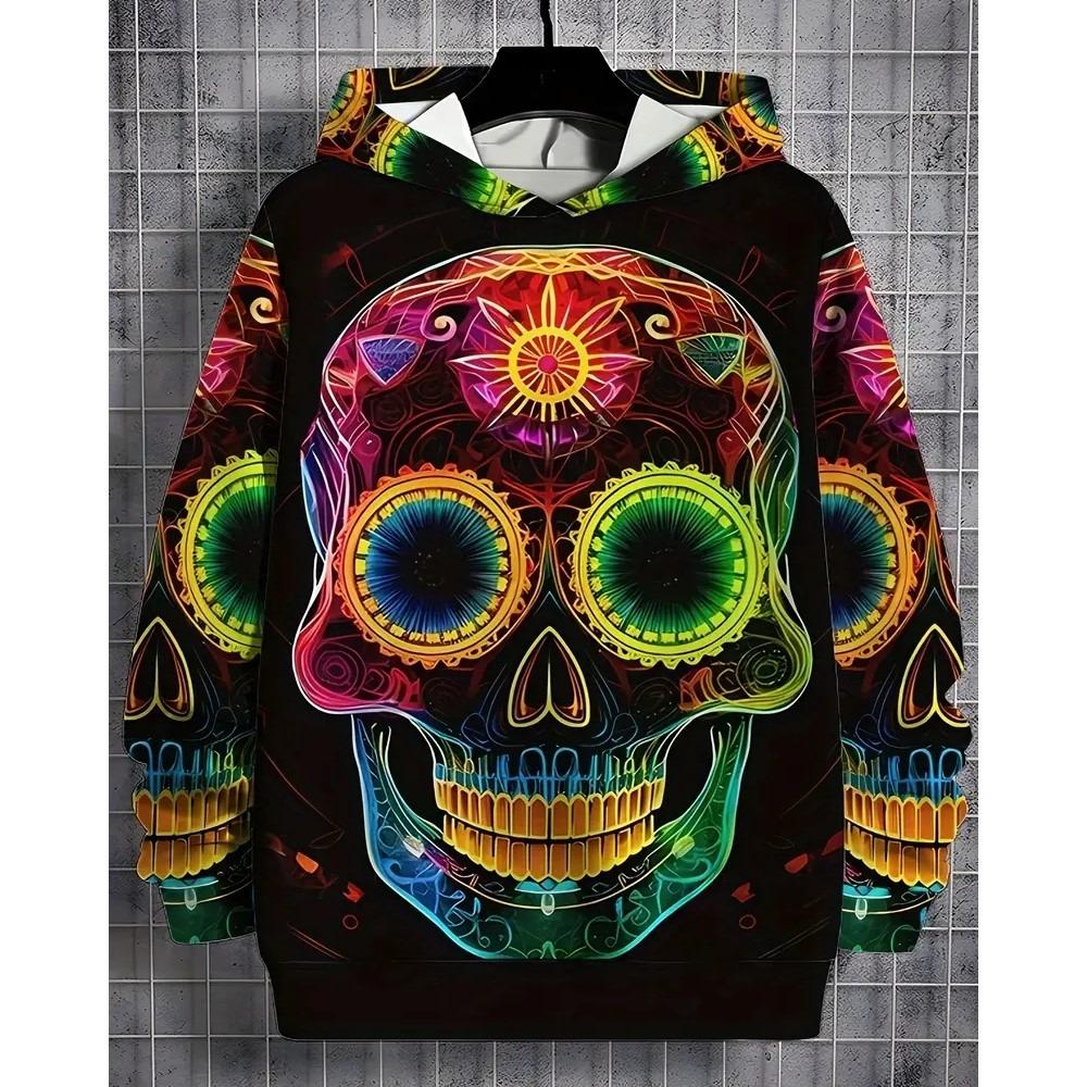 Vintage Cool 3D Print Skull Graphics Hoodie Drawstring Comfortable Super Dalian Long Hoodie Sweatshirt Spring And Autumn Clothes