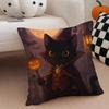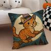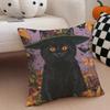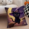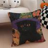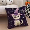 Character Spooky Halloween magic cat Cushion Cover Throw Pillow Cover Hidden Button Durable Polyester Chair Cushion