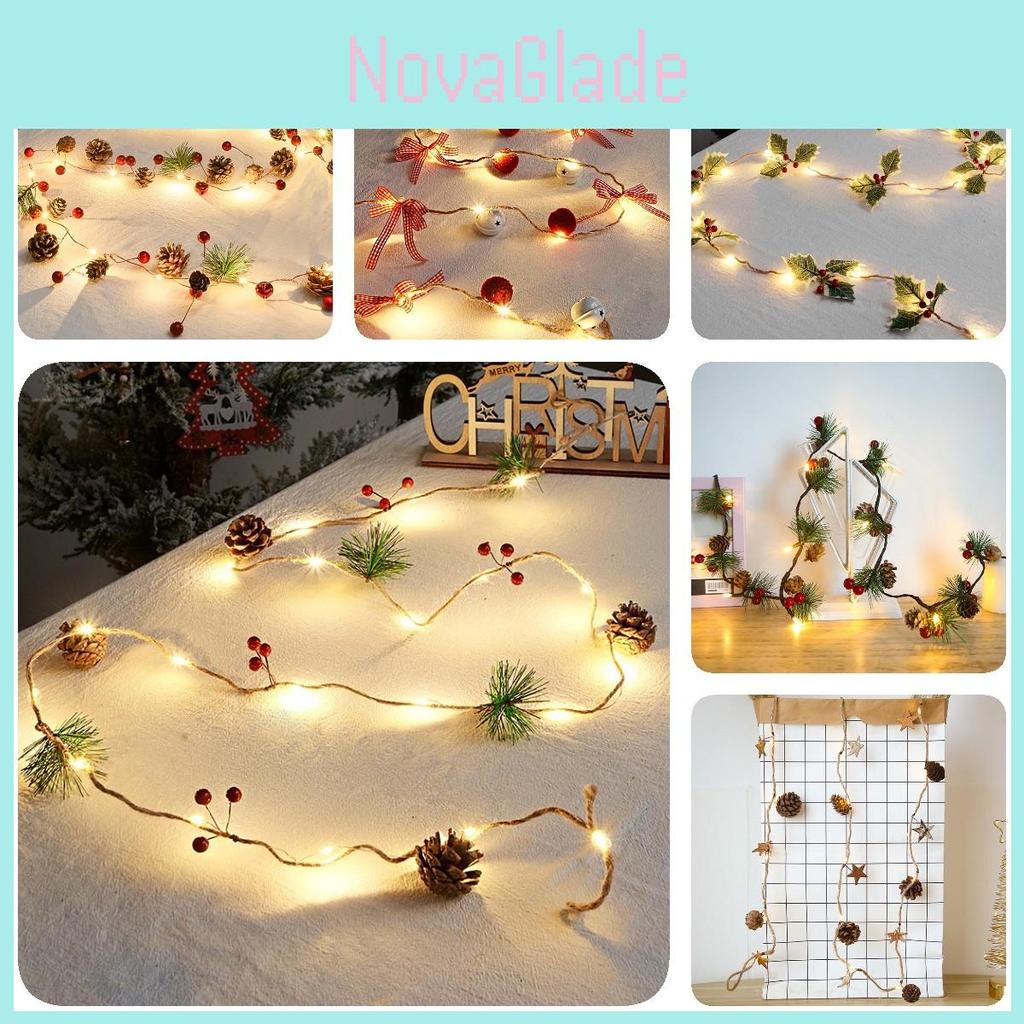 Nuostabūs 2 metrų LED pušies kankorėžių girliandos, veikiančios baterijomis, šventinei Kalėdų puošybai