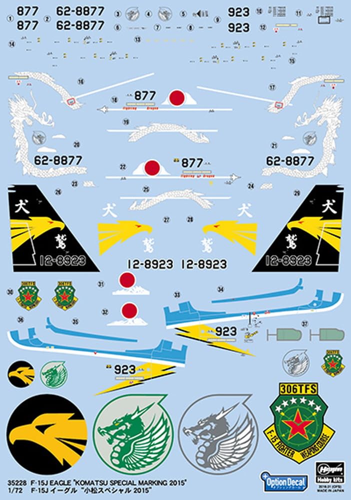 Hasegawa Japan Air Force Eagle Komatsu Special 2015 Plastic Model Decals 35228 1/72 Self-Defense F-15J