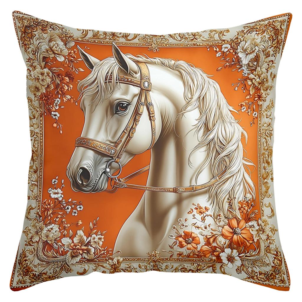 1 Pieces Exquisite Horse-Print Orange Floral Pattern Pillows Polyester pillowcase, sofa decorative cushion cov Headboard Pillow
