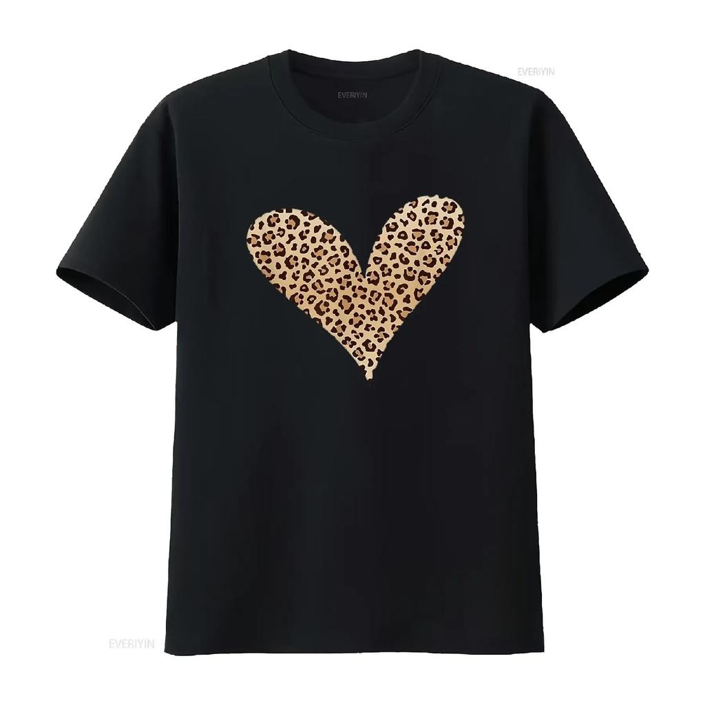 Cheetah Leopard Print Heart Women s Girls Animal T Shirt White 3X Large vintage Washed Comfortable homme Slightly streetwear