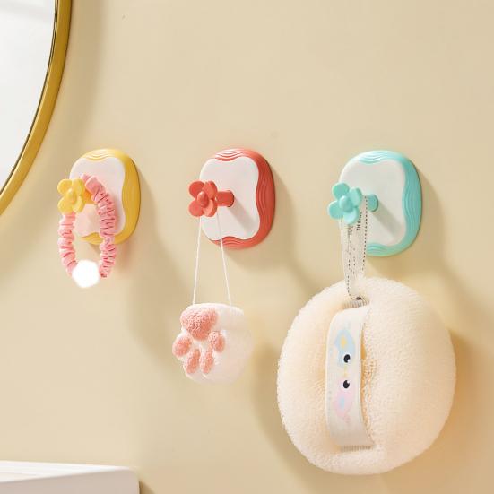 3Pcs Flower Adhesive Hooks Waterproof Bathroom Towel Hook Cute Wall Hook for Kitchen Utensils Bedroom Clothes Entryway Keys Storage
