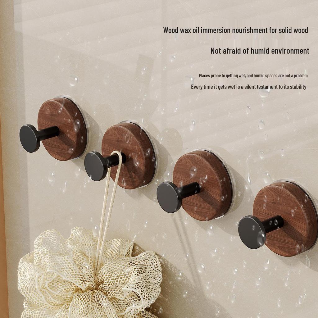 Solid Wood No-Drill Adhesive Wall Hook for Bathroom & Door, Clothes & Hat Storage