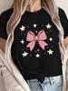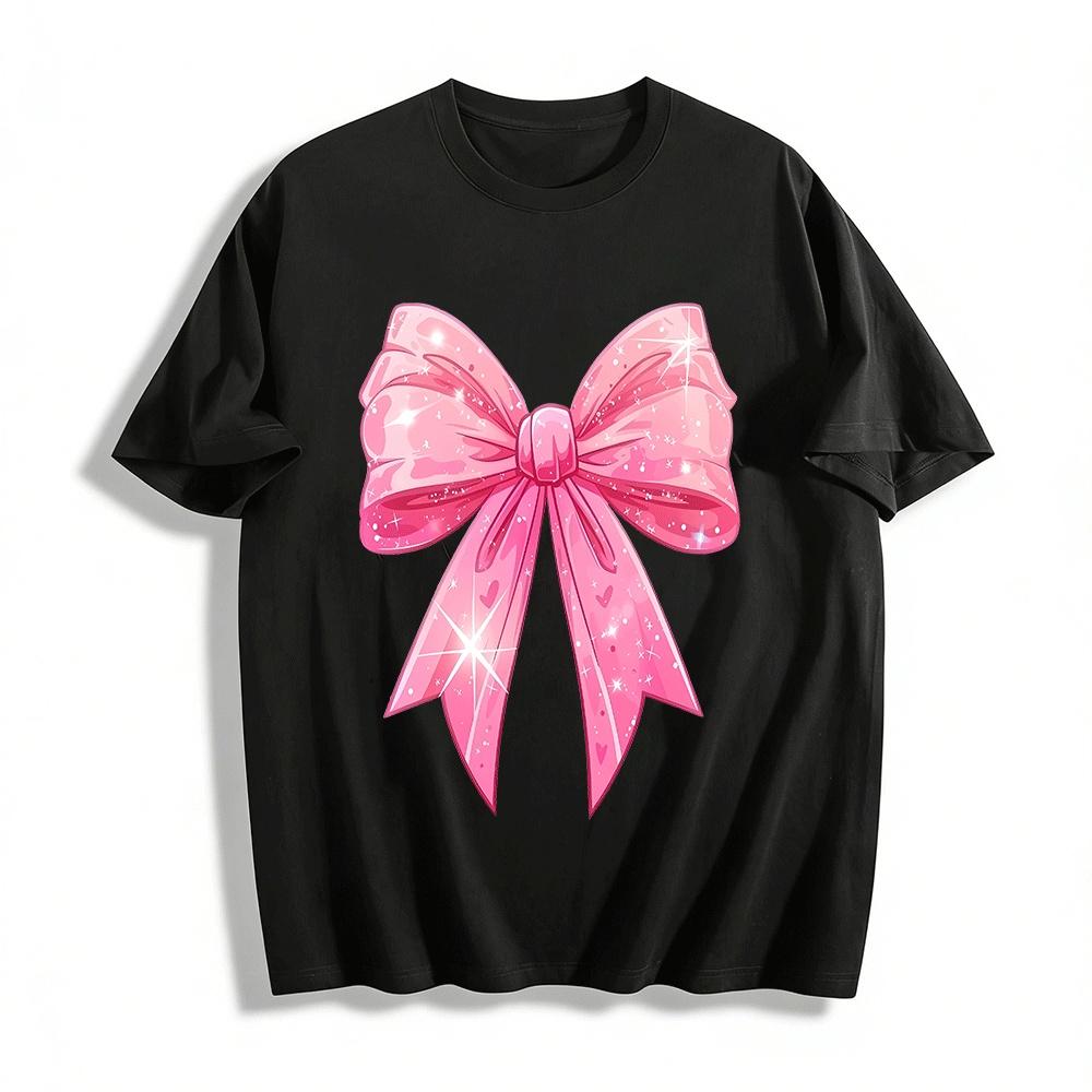Sparkly Pink Bow Print Sweet Youthful Casual Top Pure cotton T-shirt