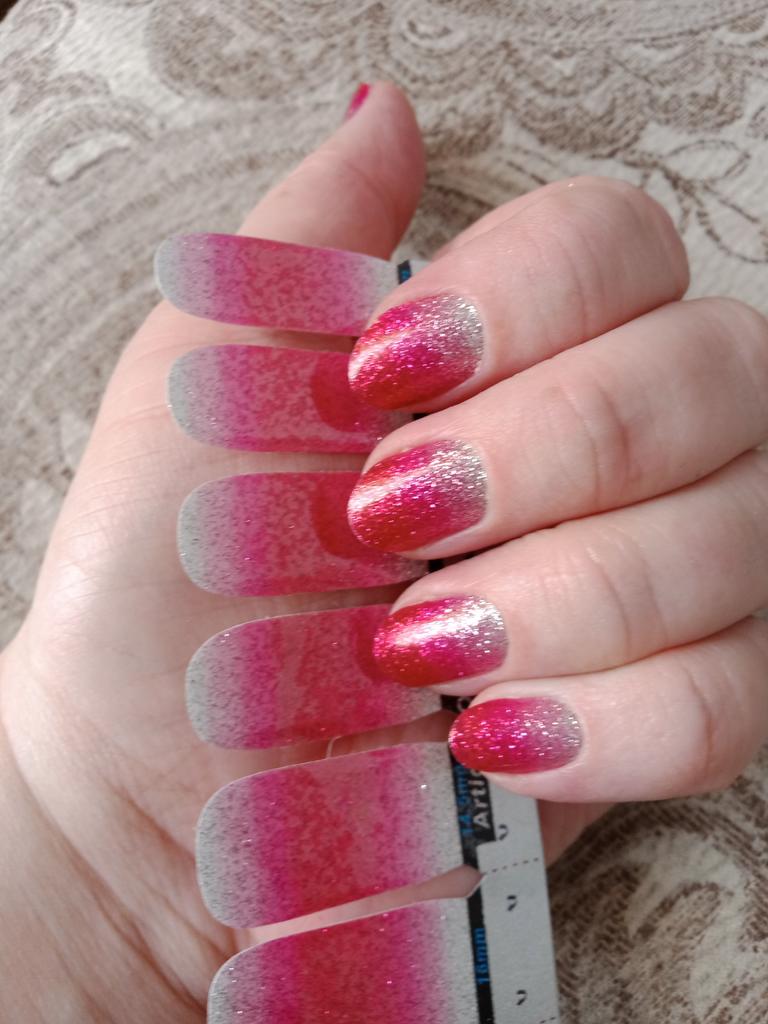 Jau no pirmās reizes viss salīmējās ideāli! Bet tas neturpinājās ilgi - līdz pirmajam kontaktam ar siltu ūdeni) ja nebrauc ciemos un ir iespēja vēlreiz uzlīmēt uzlīmi (un jaunu) tas ir lieliski, bet ja bija ciemos - nepatīkami)) izskatās ļoti skaisti, no tālienes nav skaidrs vai tie tiešām ir īsti, tāpēc iesaku, ja ļoti steidzami kaut kur jādodas un nav laika taisīt nagus.