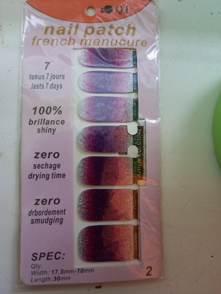 Man patīk šīs uzlīmes. Mani nagi izskatās glīti un nav jānomazgā ar acetonu. Manas rokas bieži ir ūdenī, bet uzlīmes pielīp.