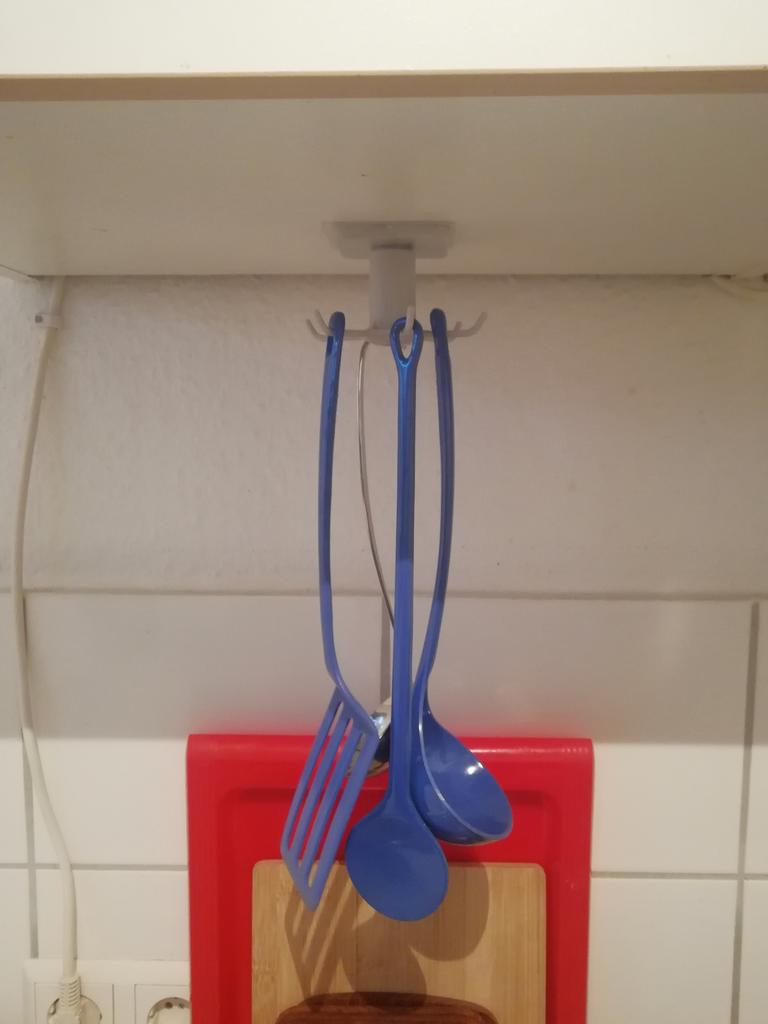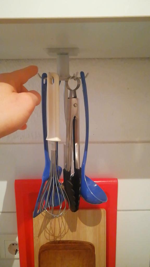 Super ātra piegāde (18 dienas). Rotējošais pakaramais ir lielisks, līme lieliski pielīp pie skapja apakšas. Tagad man ir rokas stiepiena attālumā visi nepieciešamie materiāli. Ļoti iesaku pirkumu un pārdevēju.