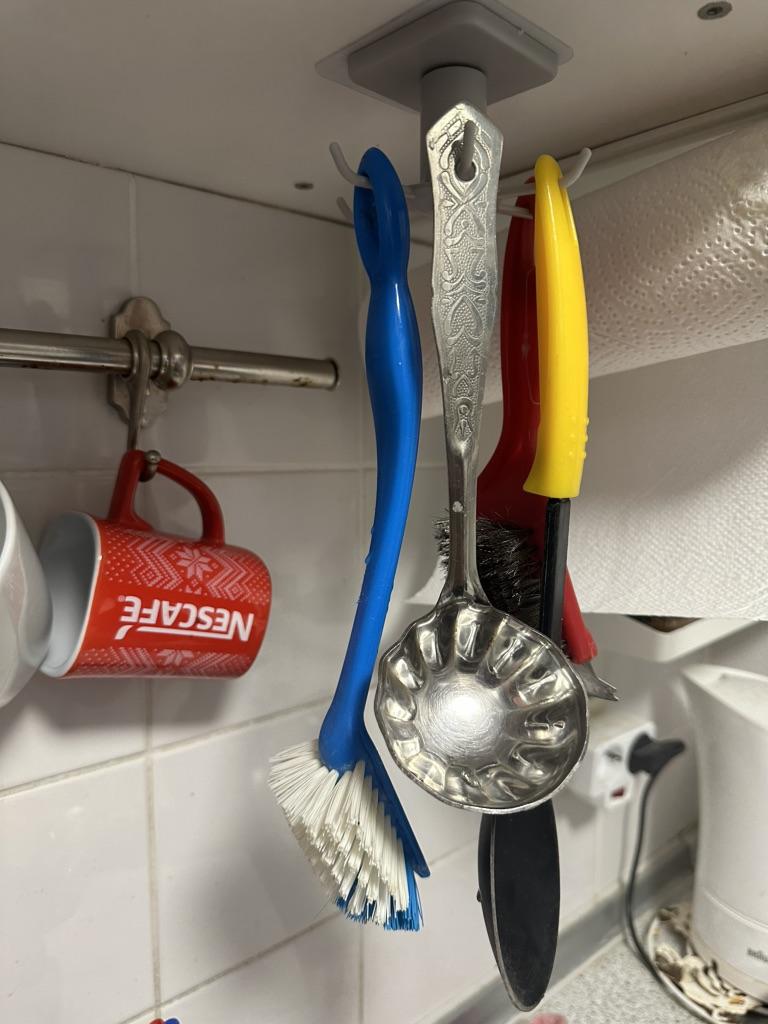 Ļoti labi mazai virtuvei, dēls tiešām priecājās. Tagad viņš var pakārt pārējās pasūtītās preces