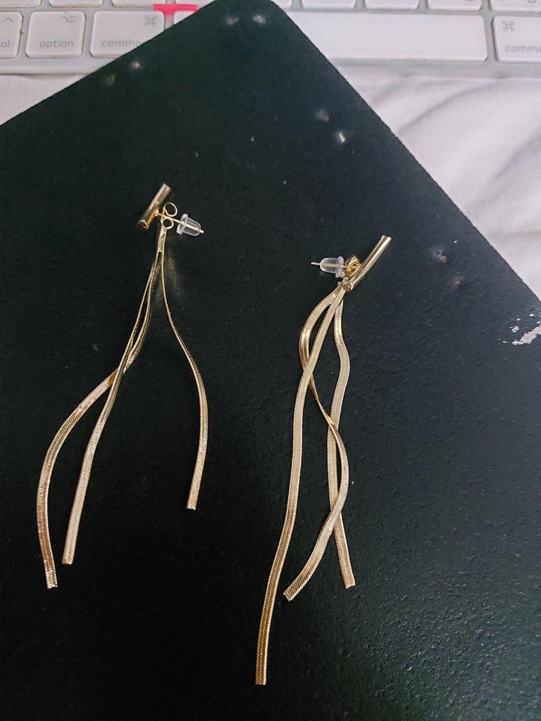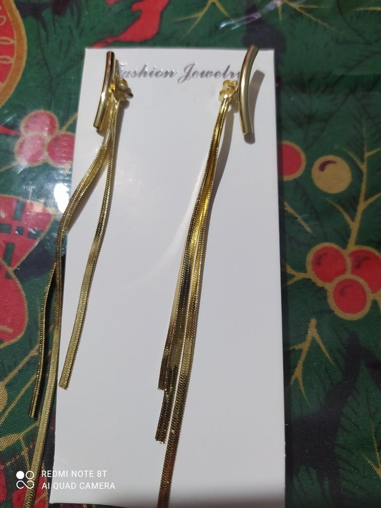 Skaisti auskari. Tomēr zelta krāsa izskatās ļoti dzeltenīga un tāpēc nedaudz pārāk viltota. Joprojām skaista.