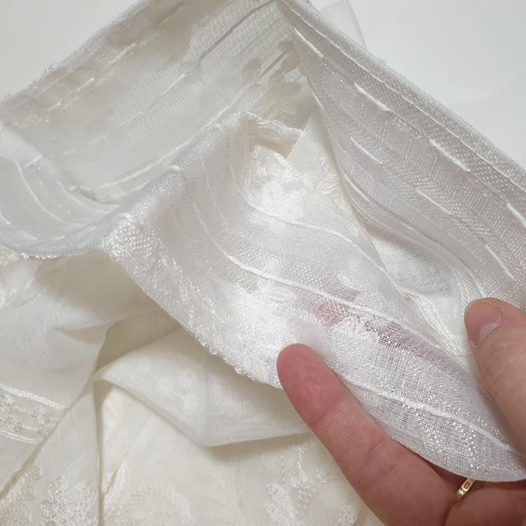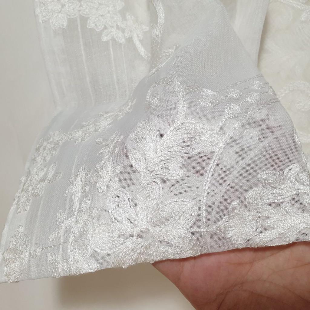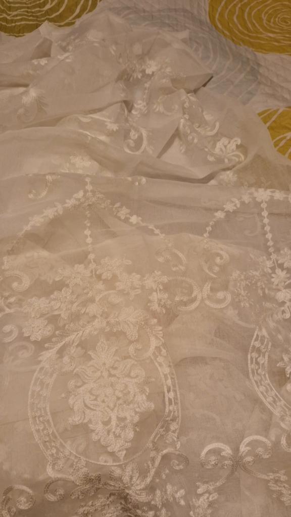 Šis ir skaists aizkars ar ļoti detalizētu un smalku šuvju darbu ⭐ Tas ir ļoti izturīgs un daļēji caurredzams, lai dienas laikā šos aizkarus varētu atstāt nolaist, un saule joprojām spīdēs cauri :)