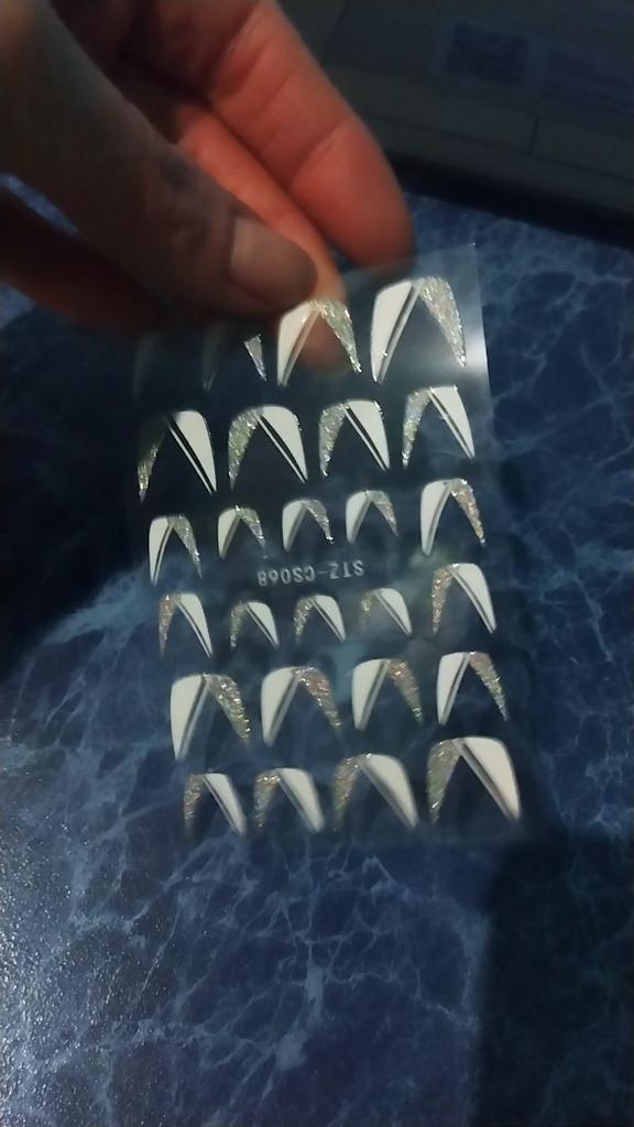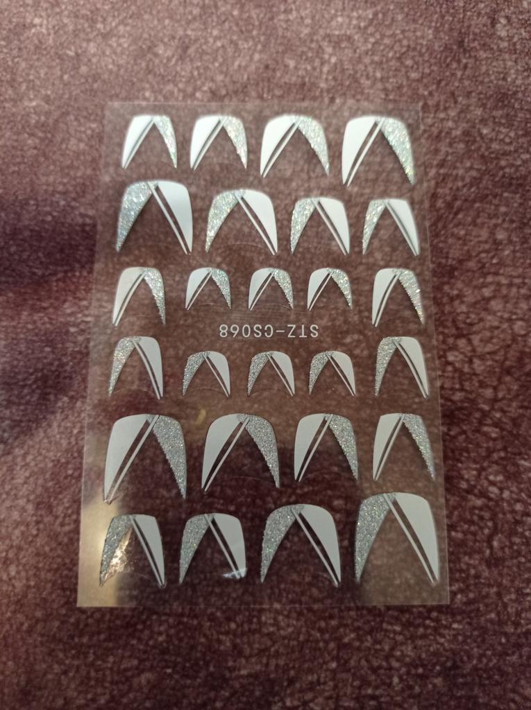 Spilgti attēli nagu slīdošie delikāti, viegli, mirdzoši franču līnijas mirdzoši, slīpi sloksņu uzlīmes
