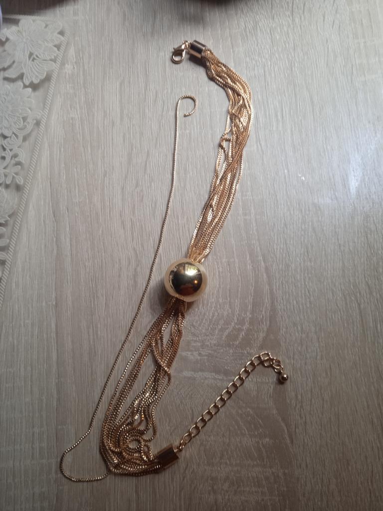 Tas izskatās ļoti skaisti un stilīgi zem V veida kakla kleitas, kā attēlā. Nopirku arī rokassprādzi, lai gan griežas (par to zinām un joprojām pērkam komplektam)😅
