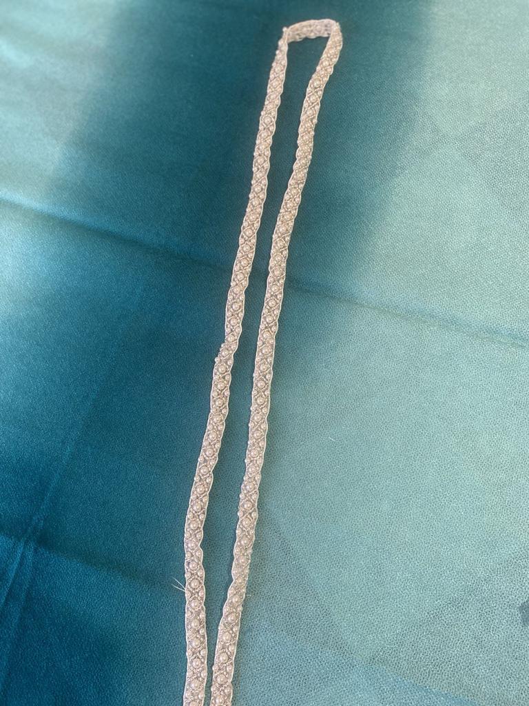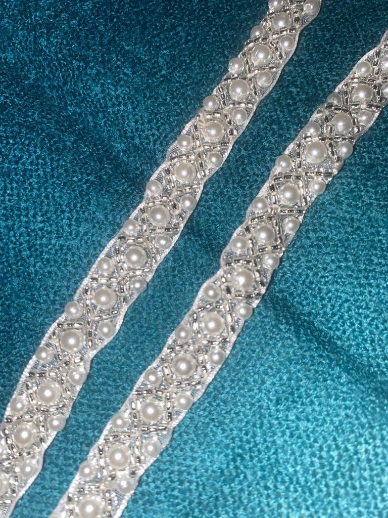 Izšūti audumi šūšanas aksesuāri Pērļu līgavas aplikācijas Pērlīšu kleitas dekors mežģīņu apdares lente