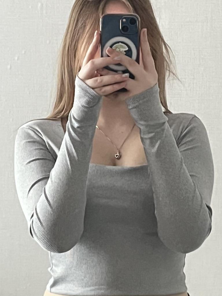 Sieviešu kokvilnas rievotas kvadrātveida kakla tops ar garām piedurknēm
