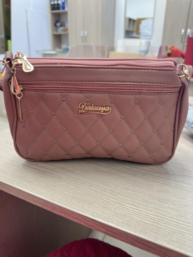 Forša putekļaina rozā soma. Tam ir 4 kabatas, kas mūsdienās ir retums, visas kabatas ir oderētas. Regulējama siksna. Augstas kvalitātes aparatūra, zelta krāsā. Forša soma vasarai, iesaku.