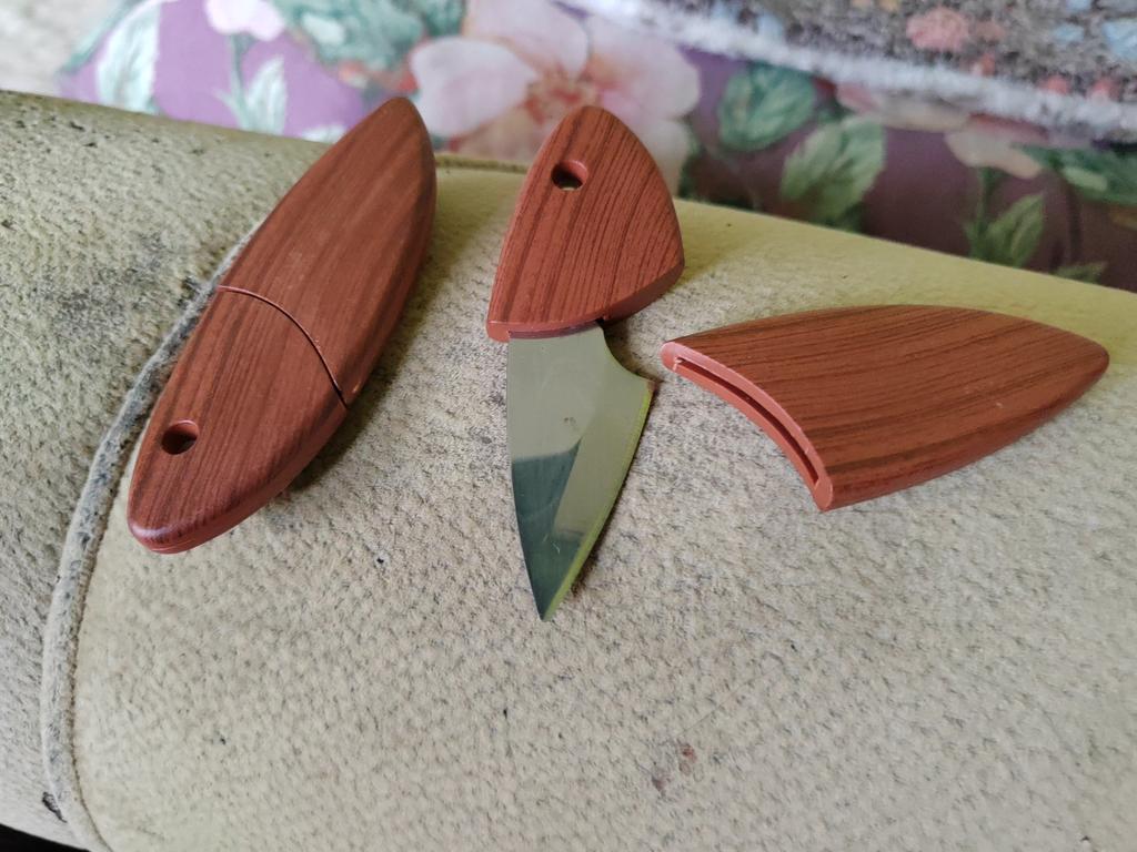 Labas mazas asmeņi, es biju vīlies, ka rokturis un maksts ir plastmasas, jo izskatījās pēc koka