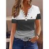 New Fashion Patchwork Contrasting Color Casual T-shirt Women Summer Button Tops Simple Tshirts Woman Elegant Plus Size Tee Women Clothing 24521