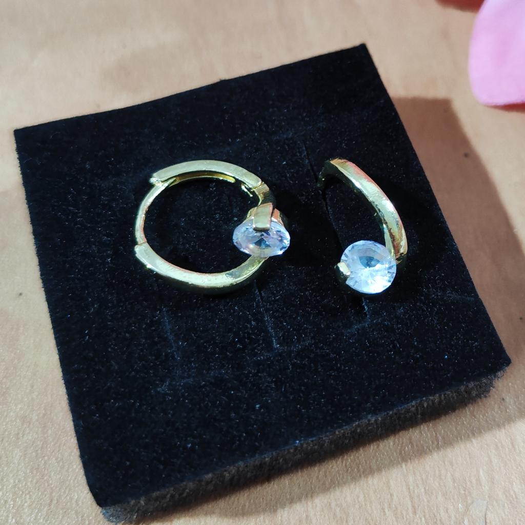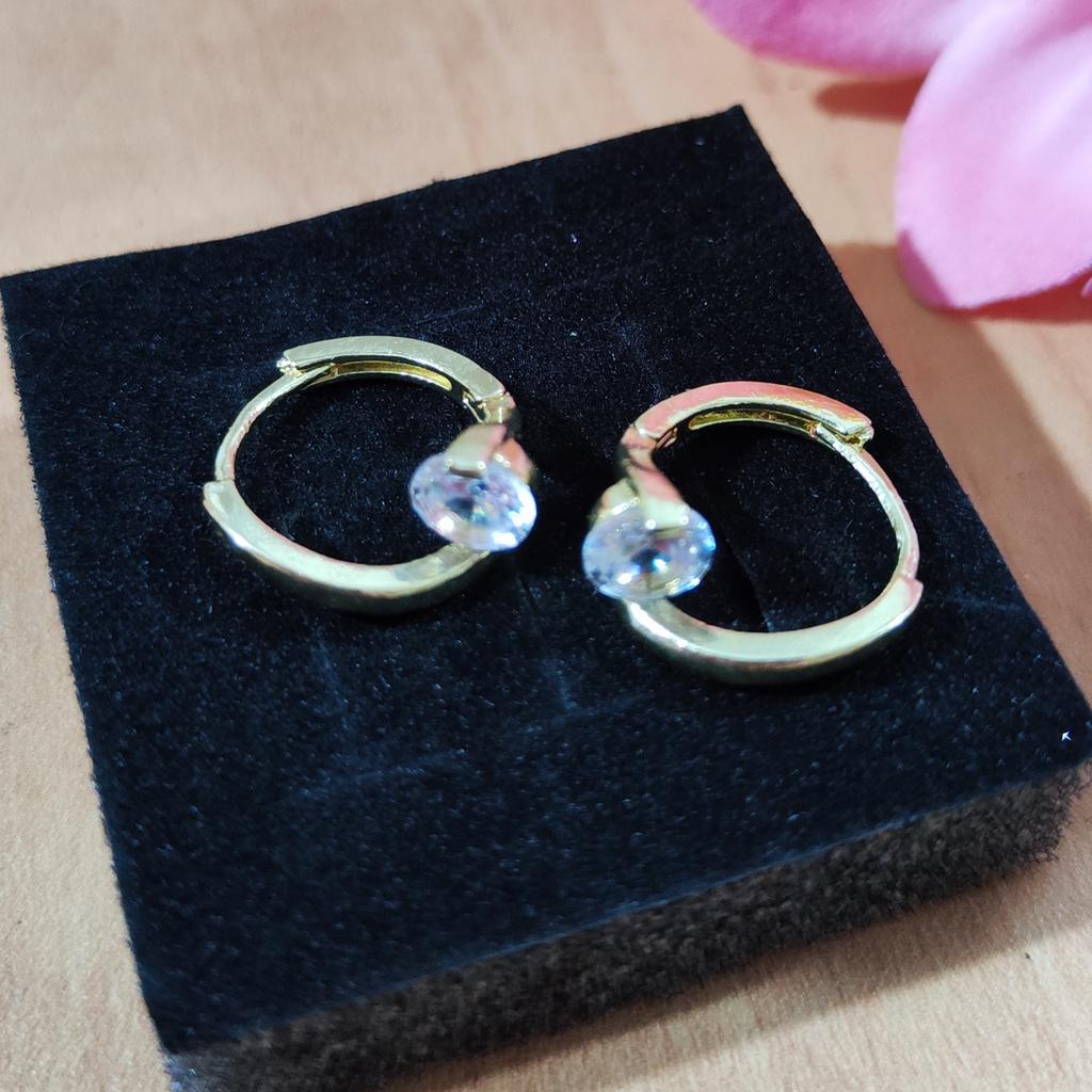 Ļoti mīļi dizaina auskari, ideāli piemēroti sievietēm vai meitenēm, izmērs ir aptuveni 1,5 cm. Izgatavoti no co0per ar zelta apdari un gludu cirkona akmeni. Ļoti viegli un ērti ausīs. Piegāde uz Īriju ilga 28 dienas, veikalā ir liela dažādu dizainu un krāsu izvēle. Laimīgu iepirkšanos!