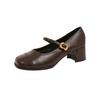Mīksta āda ar Mary Jane kurpēm sieviešu rudens jaunas vienas kurpes retro kafijas bieza papēža mazas ādas kurpes