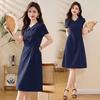 2025 Summer Women's Chinese-Inspired Frog Button Lapel Mid-Length Fashion Dress
