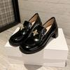 2025 Vintage British Style Chunky Heel Women's Loafers Luxury High Quality PU Leather Platform Heeled Shoes
