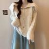 Autumn Winter horn button Knitted Sweater women's Short Cardigan jacket Loose korean Fashion solid hooded Sweaters youth Women
