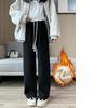 Flīsa platas bikses sievietēm rudenī un ziemā ar augstu jostasvietu, brīvas, slaidinošas, taisnas, no samta, līdz grīdai, baltas, ikdienas bikses