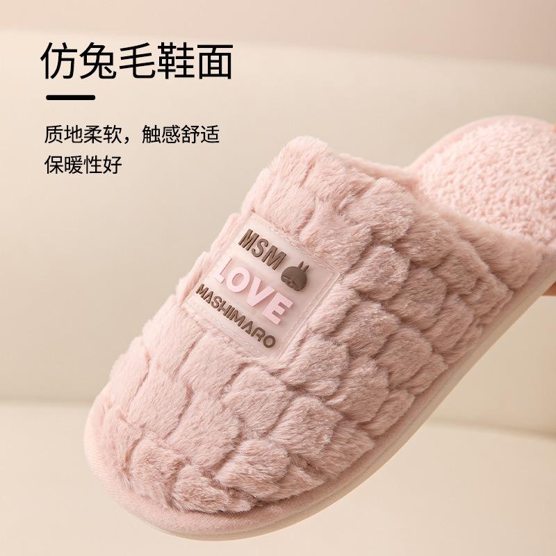 Cotton slippers women's autumn and winter home warmth plush indoor non-slip couple household floor slippers men's autumn and winter