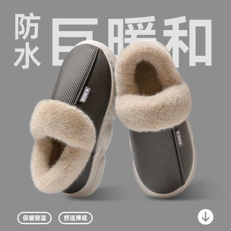 Bag heel cotton slippers pull help women's winter waterproof and warm and velvet home thick-soled leather cotton shoes men's winter