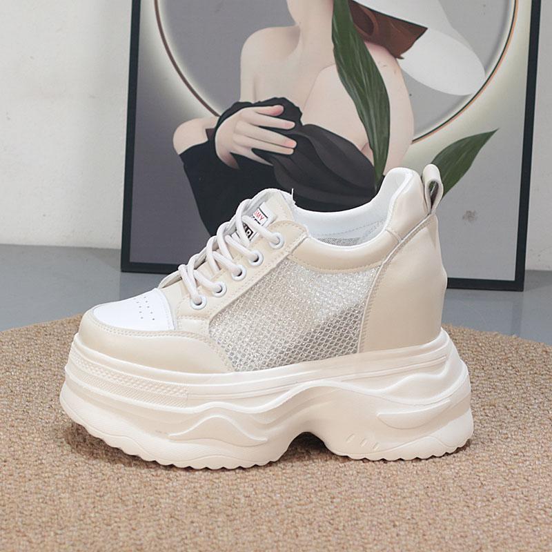 Fashion 12CM Air Mesh Microfiber Leather Ankle Boots Hollow Chunky Sneaker Women Comfy Summer Mixed Color Fashion Vulcanize Shoes