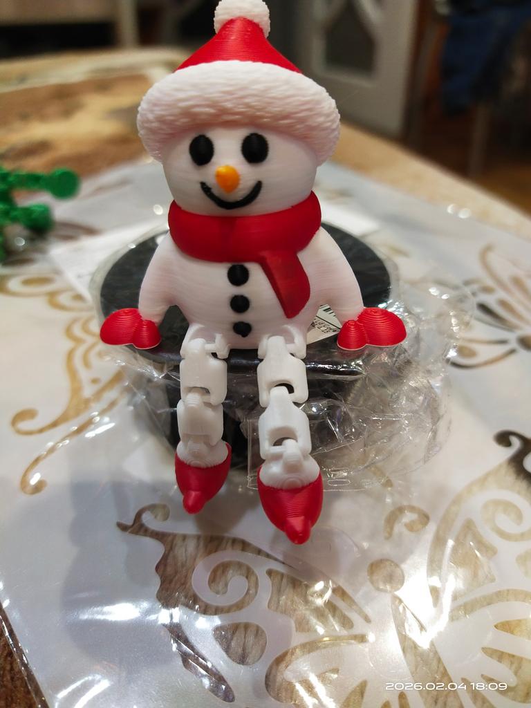 Christmas Snowman Figurine 3D Printed Sitting Snowman Ornament with Movable Joints for Winter Home Office Desk Decor