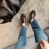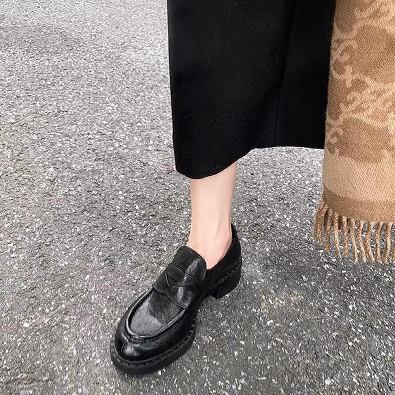 Cowhide version~ Genuine leather platform loafers women's black round head thick heel single shoes retro British lazy small leather shoes