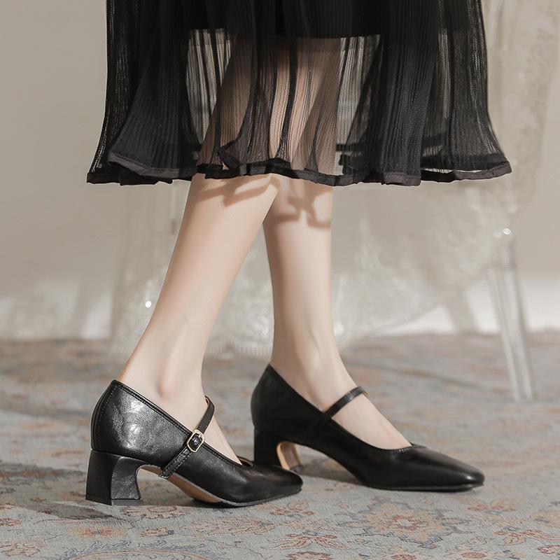 Temperamentīgas retro mazas kvadrātveida galvas biezas papēža augstpapēžu kurpes 2025 jaunas sarkanas Mary Jane viena vārda sprādzes modes vienas kurpes sievietēm