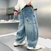 Children's Pants Spring Edition Boys and Girls Korean Color Casual Denim Straight Leg Pants Children's Loose Wide Leg Pants