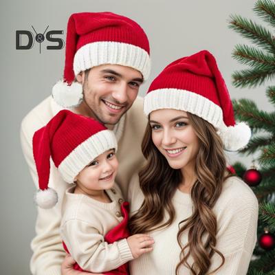 Ziemassvētku silta adīta vilnas cepure Ziemas sarkana Ziemassvētku vecīša cepure Svētku kleita Vecāku un bērnu vilnas cepure