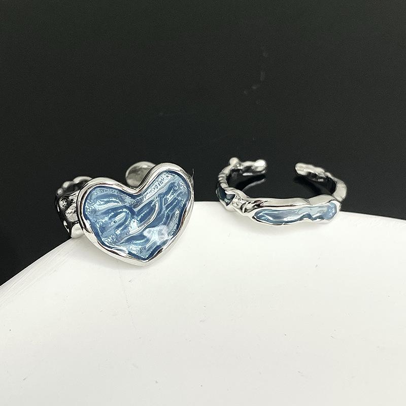 Enamel Drop Glaze Texture Love Live Ring Set Cold Wind Personality Female Niche Design Blue Ring