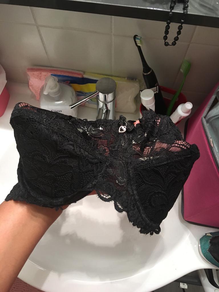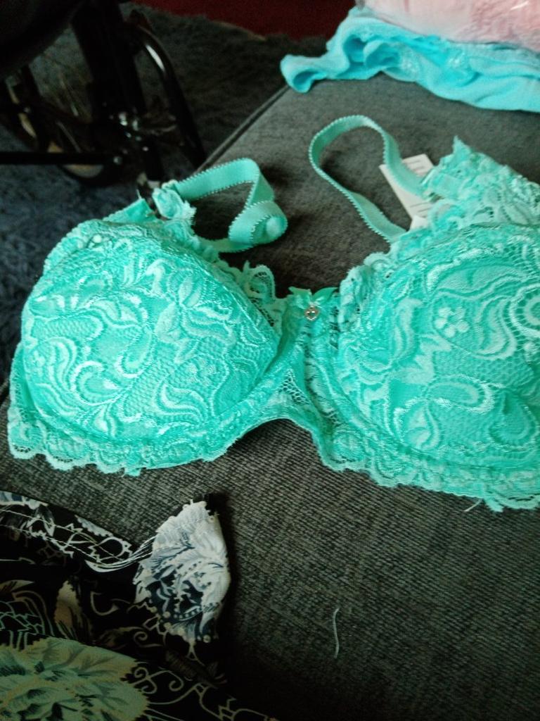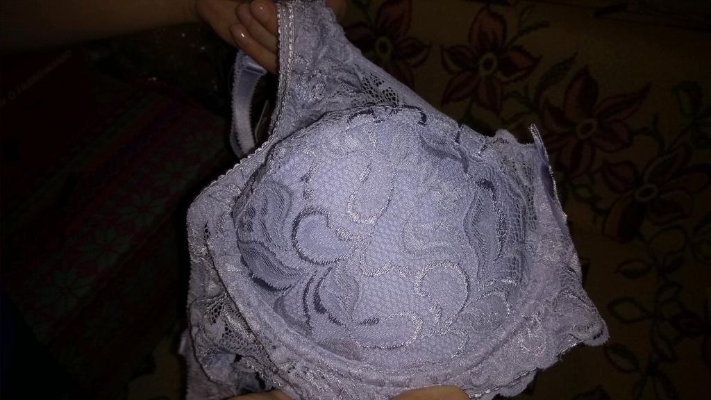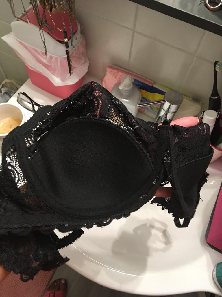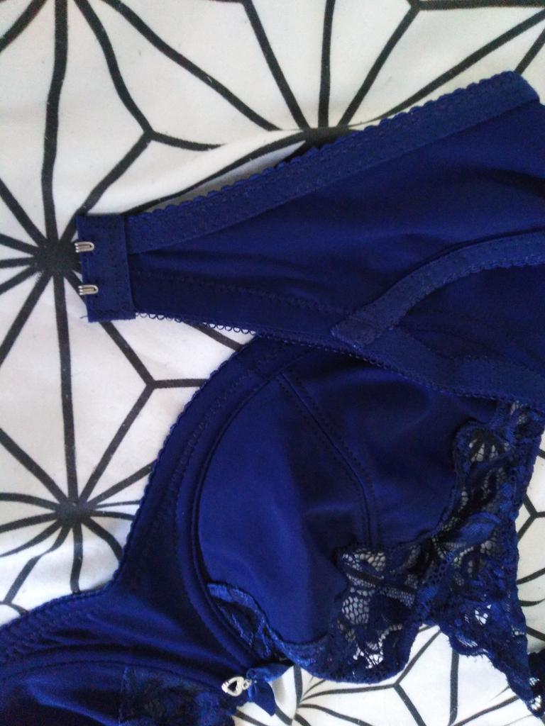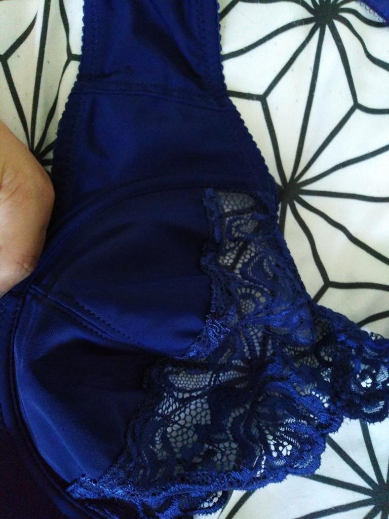Den blå BH-en må ha hatt blonder over hele koppen og det er alt over
