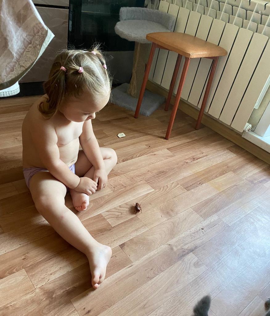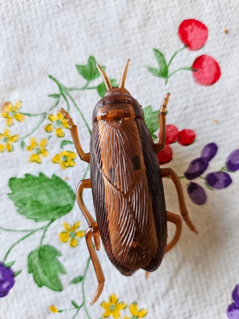 Jeg synes det er utmerket, kakerlakken går rundt i sirkler og bråker, vi skal leke litt med den og så mister hun interessen.