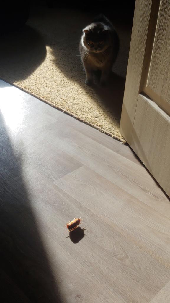 Denne insekten er kjærlighet ved første blikk for alle fire kattene mine. Han går i en sirkel på en perfekt flat overflate. Men hvis katten leker med ham, vil han gjengjelde. Min "fløy" til og med til et annet rom. Beveger seg selv om fittene snudde ham på ryggen. Kult leketøy. Batteri inkludert. Etter en halvtimes spilling uten pause, slo den seg av. Og etter en "hvile" fungerer det igjen.