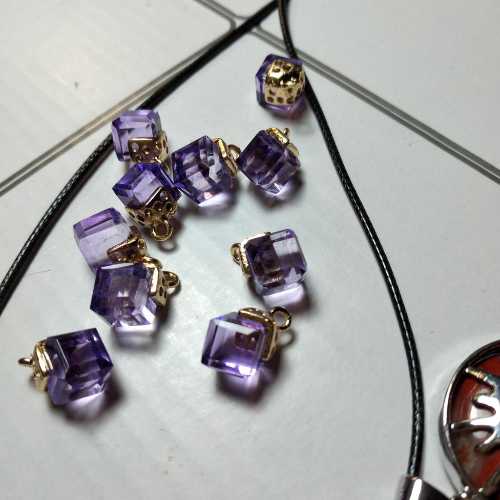 Kube glass løse perler firkantet form 2 mm hull Krystallperler for smykkefremstilling Perlearbeid DIY 10 stk.