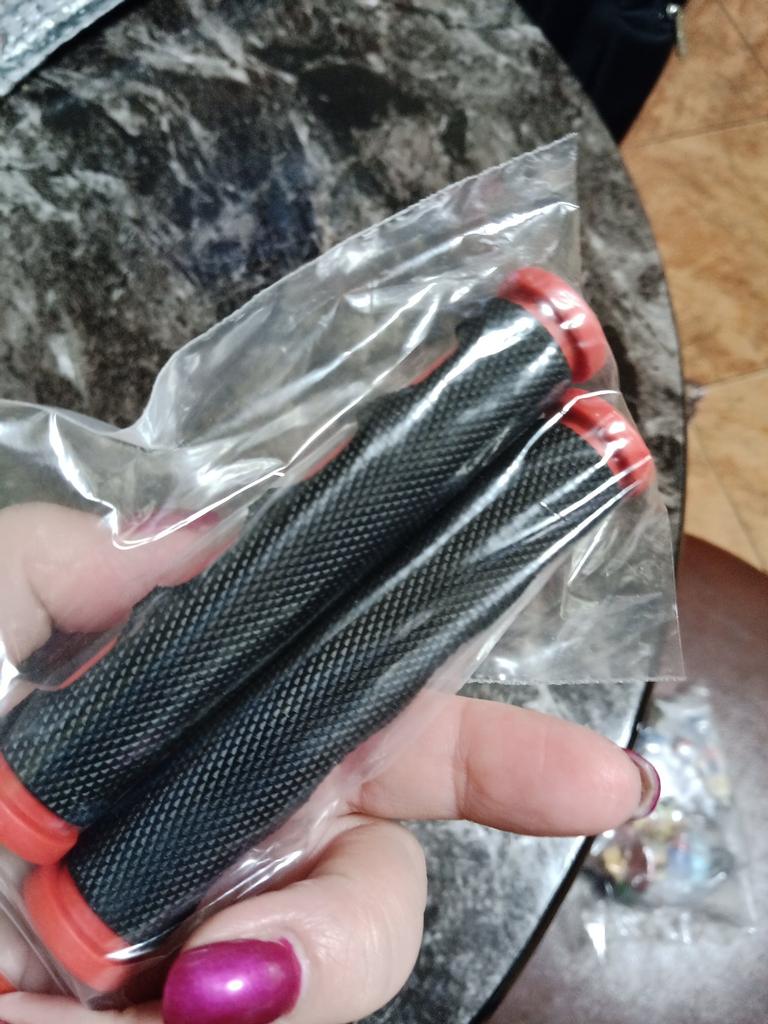 Skal prøve sykkelen min. Kvaliteten virker grei. Edit: Jeg hadde litt vanskelig for å sette den på, siden den er ment for en motorsykkel, den er litt lengre, men til slutt kan jeg si at disse er gode grep. Absolutt anbefalt selv for MTB.