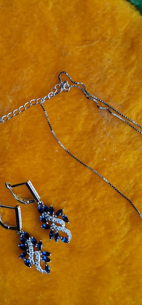 925 Sterling Sølv Smykkesett Kongeblå Zirkon Blad Dråpe Øredobber for Kvinner Ringer Klassisk Elegant Anheng Smykker Gave