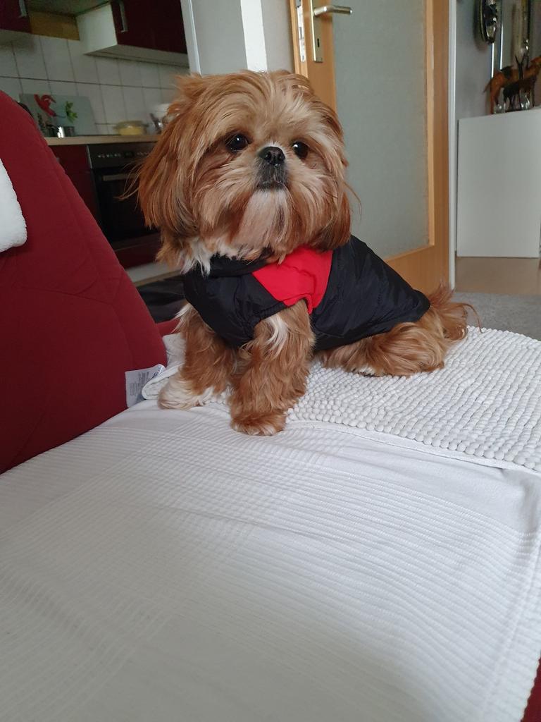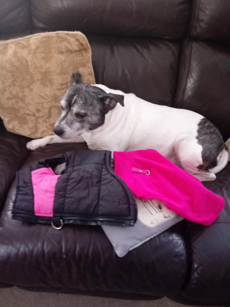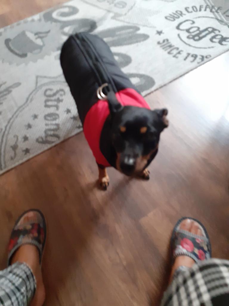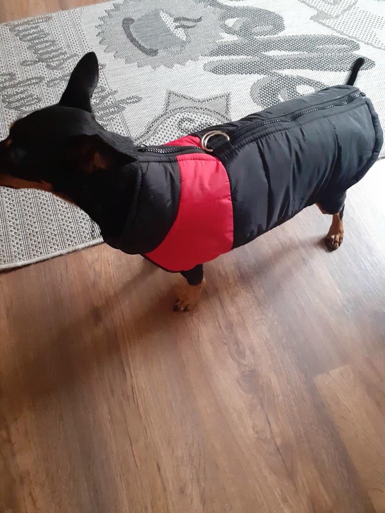Koselig liten hundefrakk, men den var litt for stram